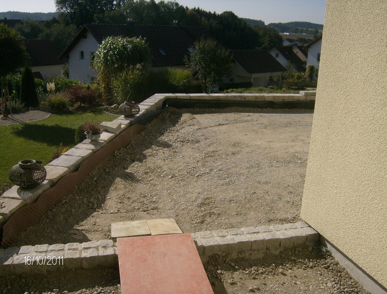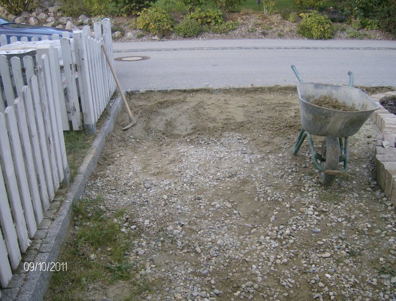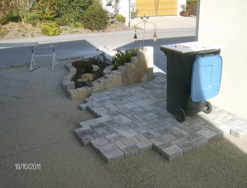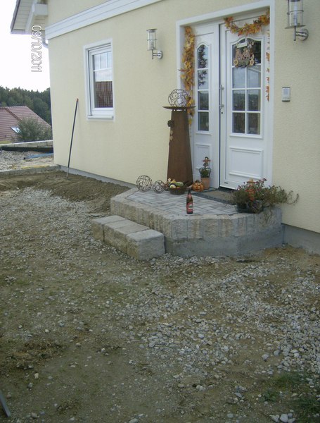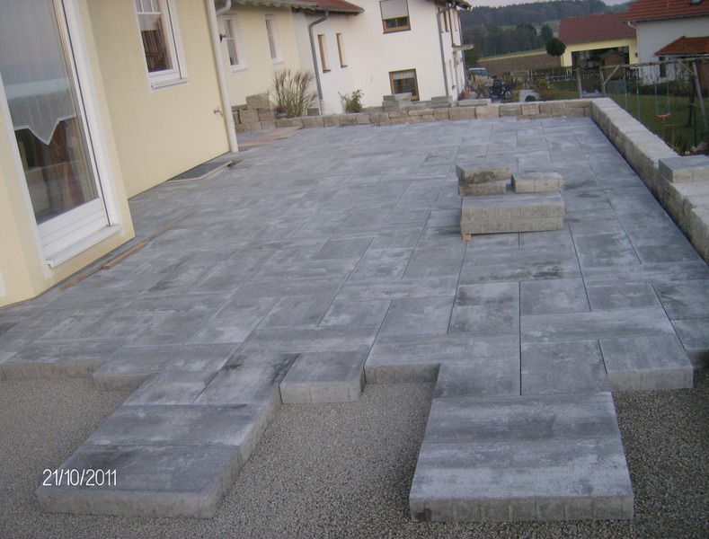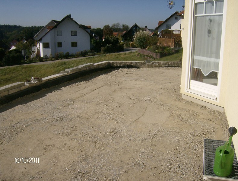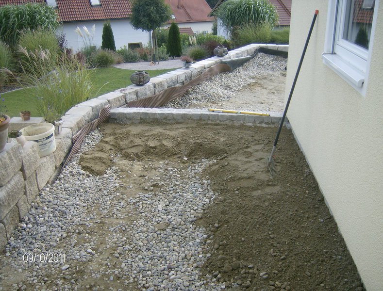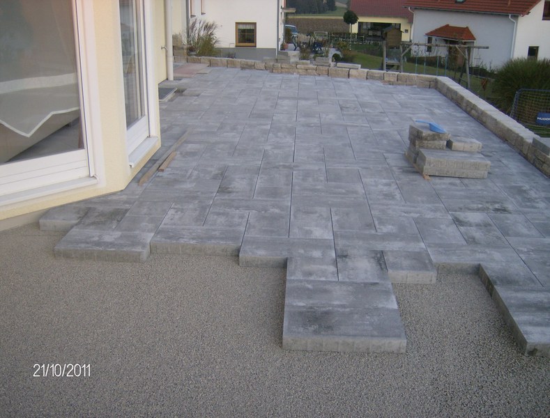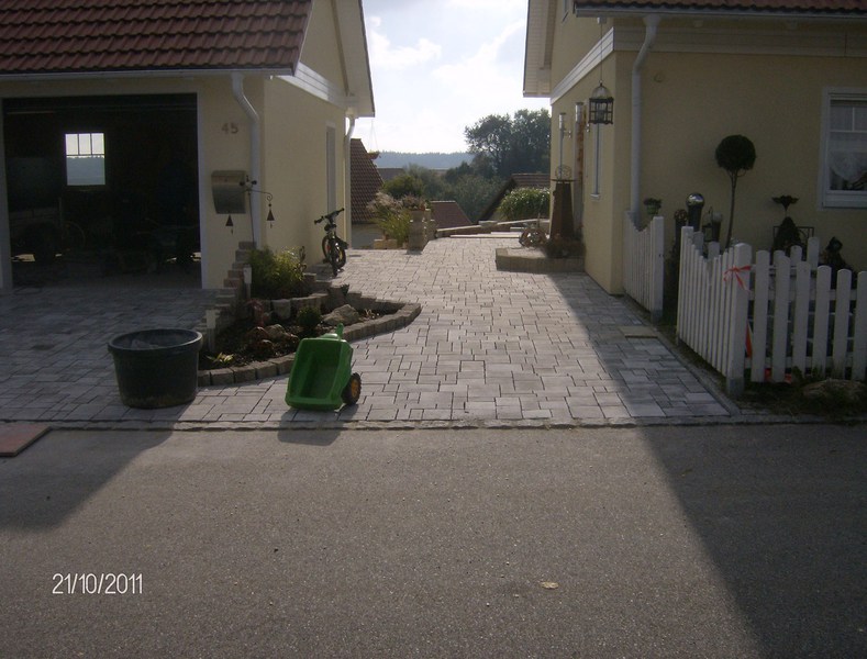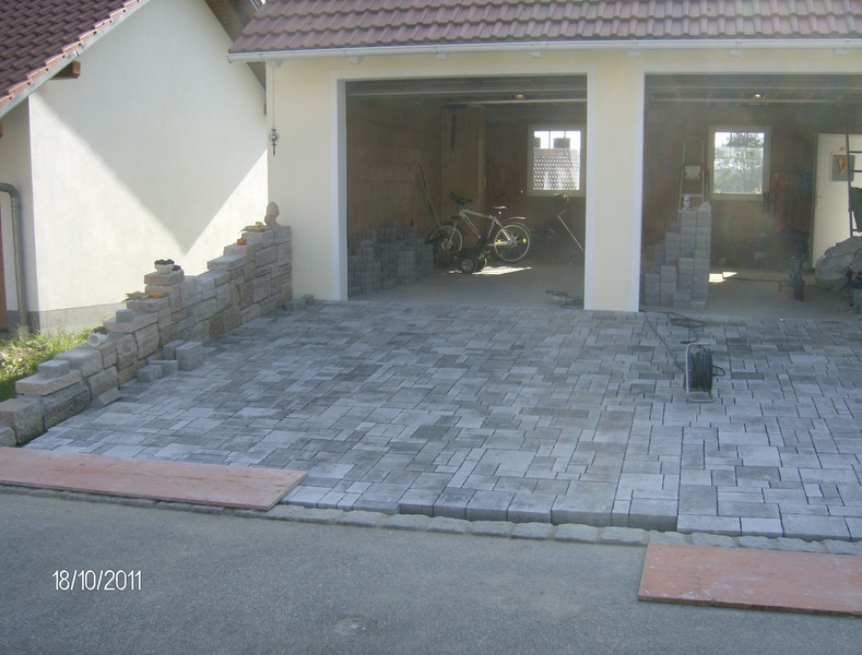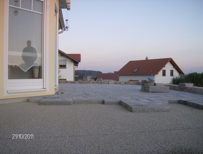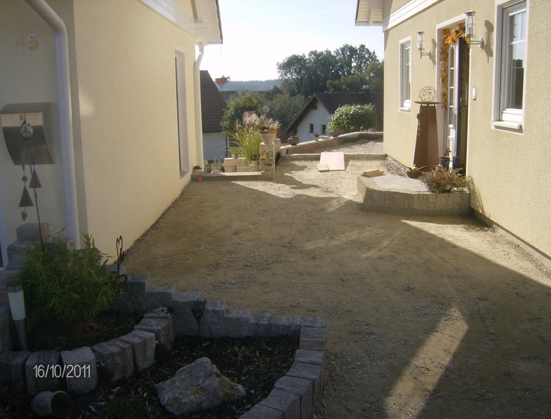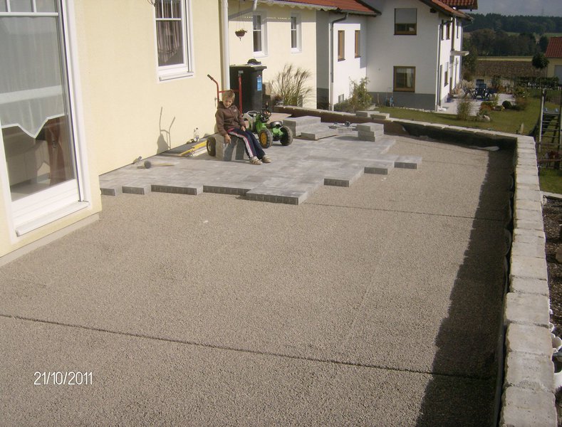 Nachdem das Haus soweit bewohnbar war, ging es mit den Außenanlagen los... Terasse und Einfahrt wurde gepflastert.....