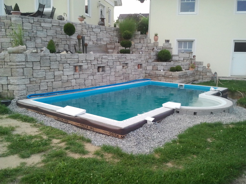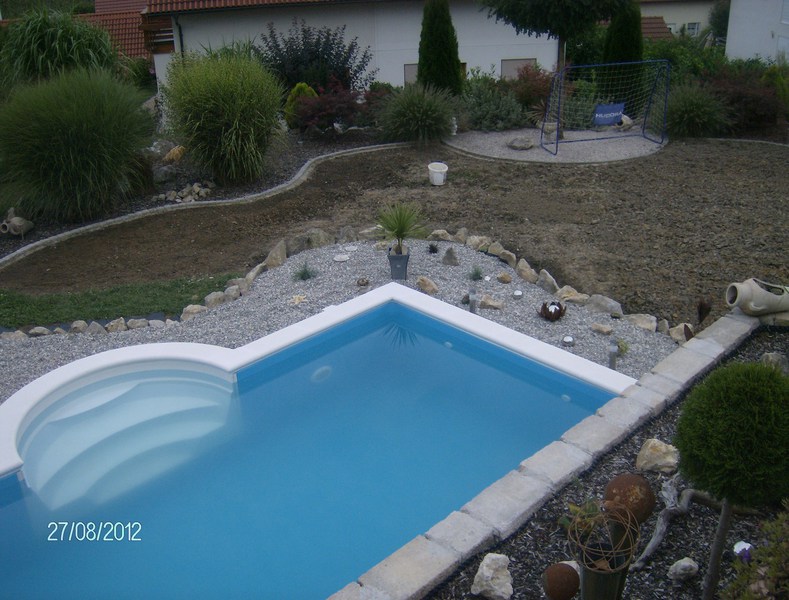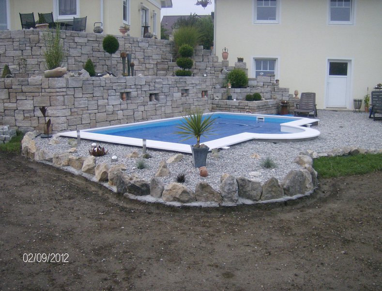 Anbei ein paar Impressionen und wie der Pool so langsam entstanden ist. Die Bauzeit betrug in etwa 8 Wochen - vom ersten Spatenstich bis zum Zeitpunkt als auch die Randsteine verlegt waren.